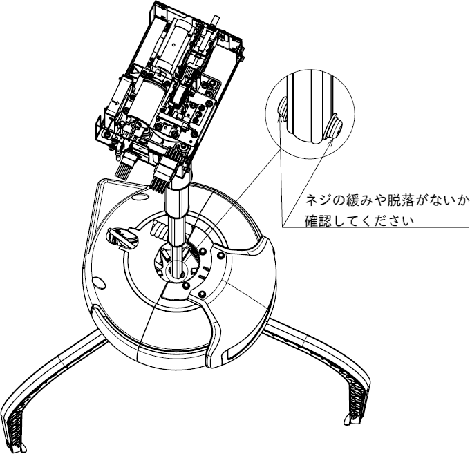 Zメカを下降させた状態で上図のUFOメカパイプ固定ネジが緩んでいないかをご確認ください。